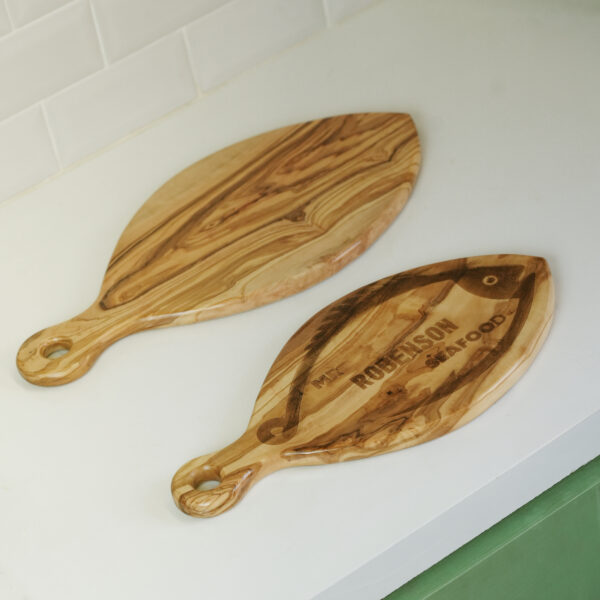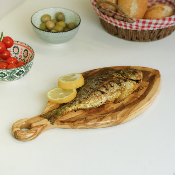 Apportez une touche élégante et naturelle à vos repas avec notre planche à découper en bois d’olivier, parfaite pour le poisson, la charcuterie ou les apéritifs. Chaque planche est artisanale, fabriquée à la main à partir de bois d’olivier durable, avec des veines uniques qui rendent chaque pièce absolument unique.