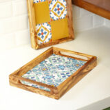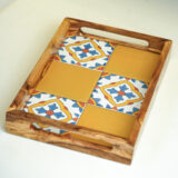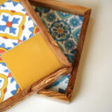 Plateau en bois d’olivier et céramique – Élégance artisanale tunisienne